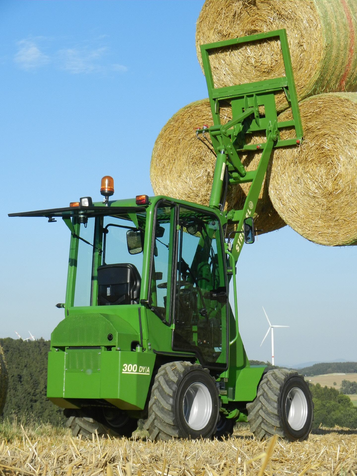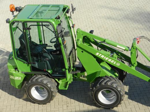 Weitere Ausstattungsmerkmale der Striegel-Lader sind Selbstsperrdifferential auf beiden Achsen, hydraulische Geräteverriegelung, sehr große Hubhöhe 3250 mm, extrem sparsame bärenstarke, wassergekühlte, Direkteinspritzer-Dieselmotoren von Yanmar, die selbstverständlich auch den neuesten Abgasvorschriften entsprechen.